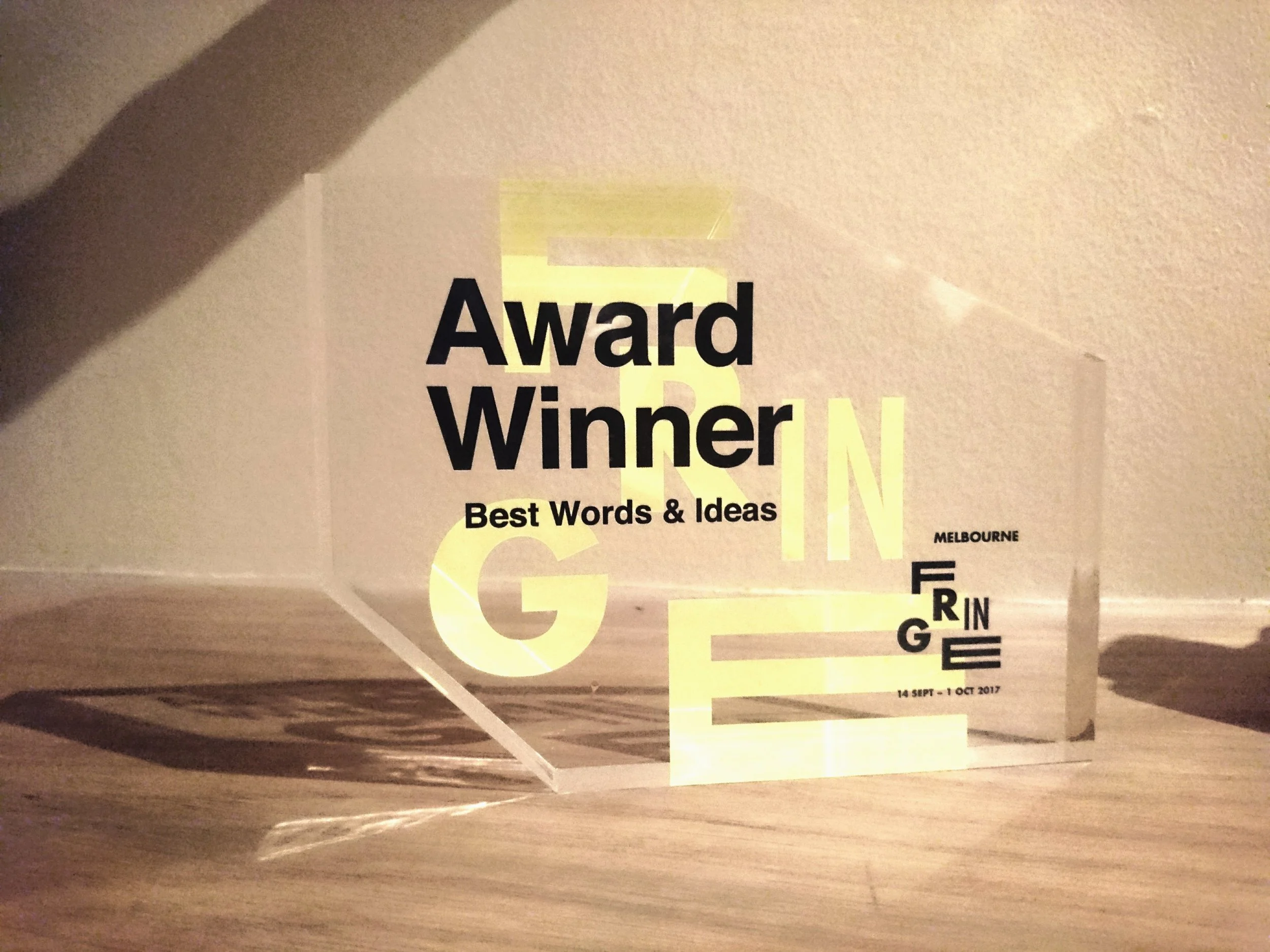 SideKicked has been awarded for best show in the Words and Ideas category of 2017 Melbourne Fringe.